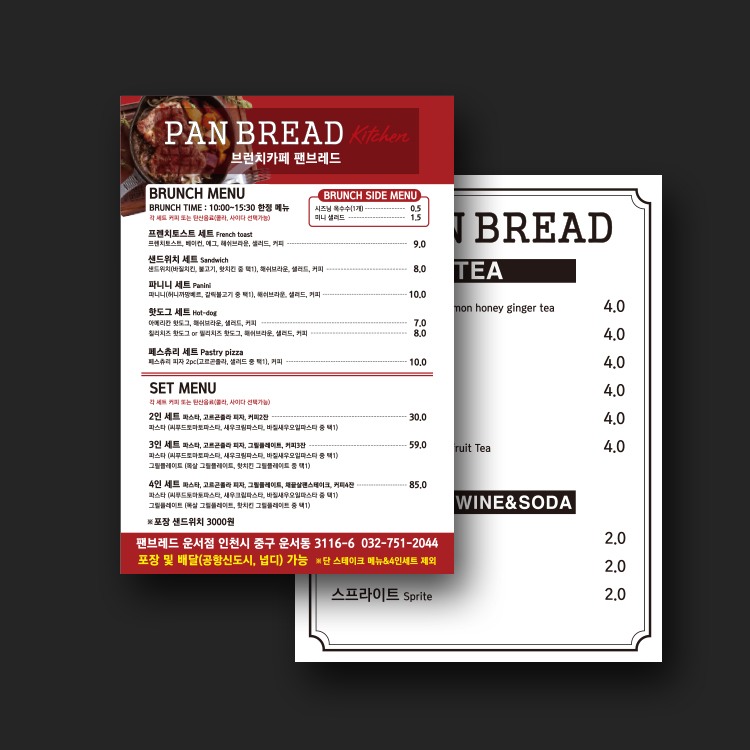 * 메뉴판 각 사이즈에 맞게 제작해 드립니다.