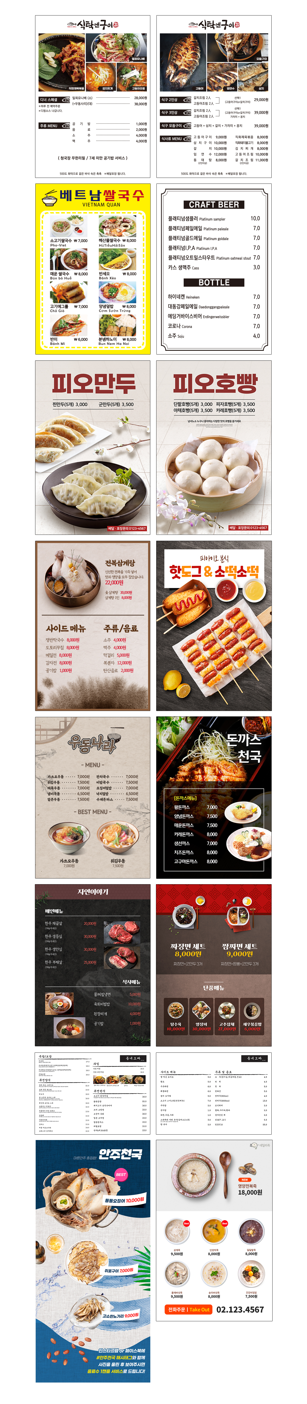 메뉴판에 들어가는 모든 내용 및 가격을 상세하게 기재해 주셔야 합니다.